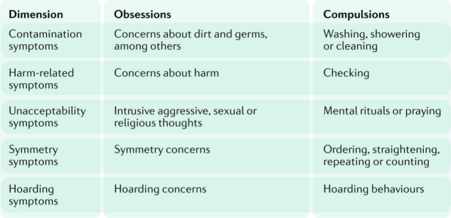 強迫癥已被發現與許多危險因素有關,如遺傳、環境因素、氣質和關鍵的生活事件。強迫癥患者還經常與其他心理健康問題作斗爭,四分之三的人有焦慮癥病史,近三分之一的人與抑郁癥作斗爭。